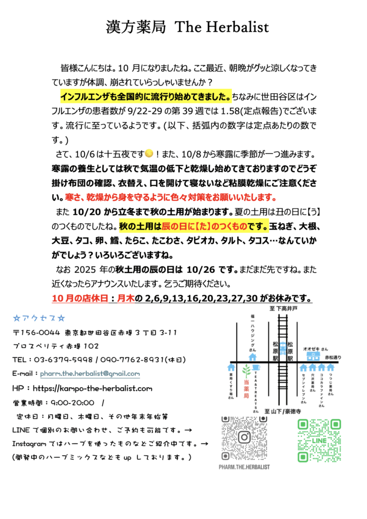 🌱秋の土用と食養生 ちょっと先の話ですが…