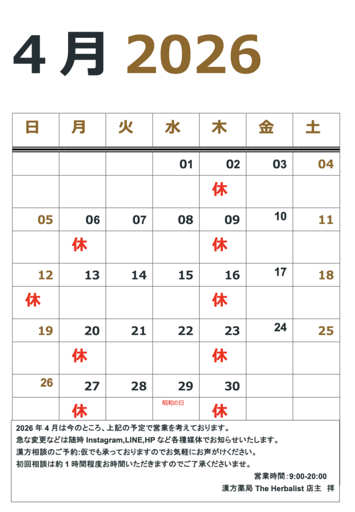 - 初回相談料:¥5,500(税込)+煎じ薬は基本、¥880/日でご用意。